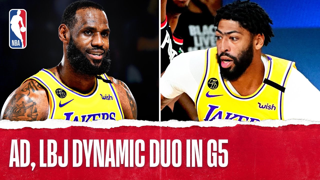 Dans ce Game 5, LeBron James complète un triple double avec 36 points à 14/19 aux tirs dont 4/7 à trois points, 4/4 aux lancers francs, 10 rebonds et 10 passes décisives en 34 minutes de temps de jeu. Son comparse Anthony Davis ajoute 43 points à 14/18 dont 4/6 derrière l'arc, 11/13 aux lancers francs, 9 rebonds et 4 passes en 36 minutes. Au total, le duo James-Davis inscrit 79 points sur les 131 des Californiens !