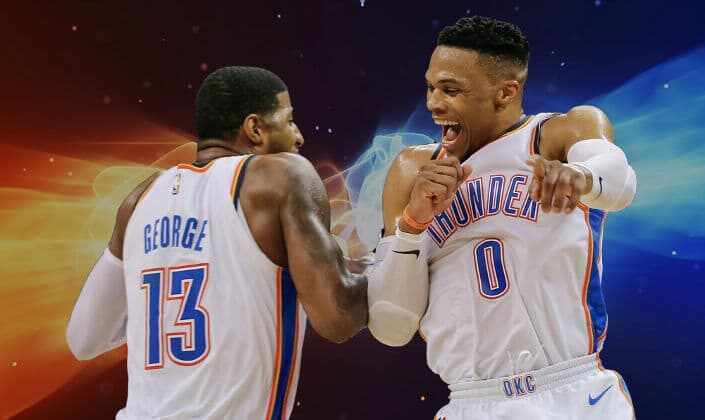 Alors que signifie son apparition avec Paul George chez les meilleurs duos de la NBA ? Tout simplement, elle est le symbole de la bonne évolution des systèmes de Billy Donovan. Éternellement critiqué, il a su enfin trouver un terrain d’entente avec ses superstars pour équilibrer le jeu du Thunder. Cette réussite est surtout à créditer sur le compte de son duo de All-Stars. Même si Russell Westbrook effectue encore certains choix douteux en attaque, les choses s’améliorent enfin. Après 10 ans de carrière, il était temps. La grande différence avec la saison dernière, c’est qu’au lieu de jouer en isolation chacun leur tour de manière prévisible, Westbrook et George jouent désormais ensemble. Ils combinent, et créent des espaces pour libérer les tirs ouverts. Conséquence, les passes décisives du MVP 2017 ont enfin un impact réel, et les pourcentages au tir de Paul George explosent pour faire de lui un candidat sérieux à ce même trophée remporté par son coéquipier il y a 2 ans. Elle est là, la véritable amélioration d’OKC.