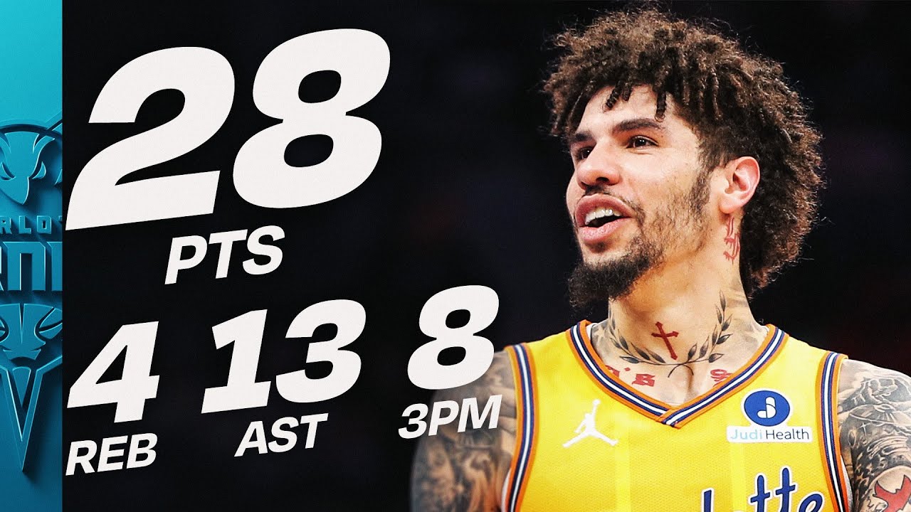 Ball a terminé la rencontre avec 28 points et 13 passes décisives en un peu plus de 29 minutes, réussissant 8 de ses 11 tentatives derrière l'arc. Kon Knueppel a également inscrit 28 points, tandis que Brandon Miller en a ajouté 26, dans une soirée où Charlotte a affiché une adresse globale impressionnante à 3 points (24 sur 49).