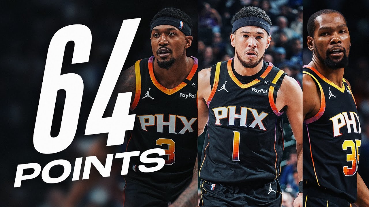 NOP02h00Dans la victoire des Suns sur les Mavericks 125 à 116 à l'American Airlines Center, le Big Three de Pheonix totalise 64 points. Individuellement, Devin Booker est à 24 points et 6 passes décisives, 21 points, 9 rebonds et 8 passes de Kevin Durant puis 19 points et 6 passes de Bradley Beal.