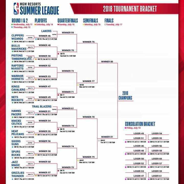 Les qualifications sont terminées ! Le classement est établi et on vous dévoile le tout frais tableau de la Summer League. Désormais, les matchs vont se dérouler chaque soir et le perdant sera éliminé de la course au trophée. C'est maintenant que les prospects doivent se révéler. Cette lutte nous emmènera jusqu'à la finale de 17 Juillet. Vous pouvez maintenant découvrir le tableau et les premiers 1/16ème de finale qui auront lieu cette nuit.
