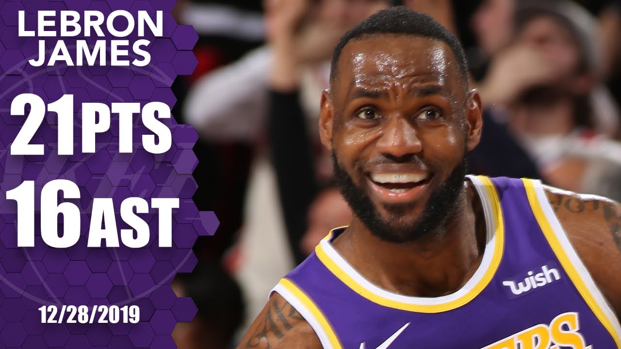 Il a tout fait, notamment un énorme chasedown block sur Anfernee Simons (action numéro 3 du Top 10 du jour). LeBron James joue 37 minutes, le temps de poster 21 points à 7/15 aux tirs dont 1/4 à trois points, 6/8 aux lancers francs, 16 passes décisives (record cette saison pour le King) et 7 rebonds. Le Magic Johnson des temps modernes des Lakers !