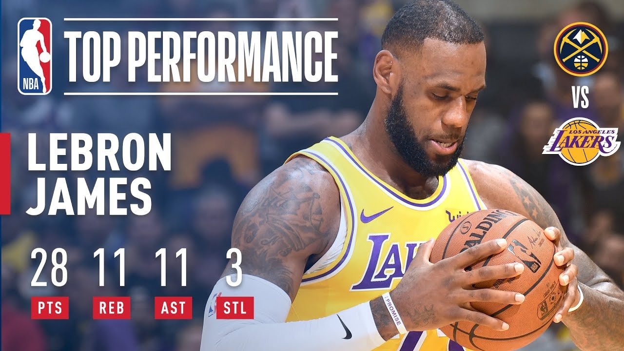 NYK 108 (36-21) Il s'agit là du premier triple double de LeBron James avec les Lakers, victorieux 121 à 114 face aux Nuggets au Staples Center.