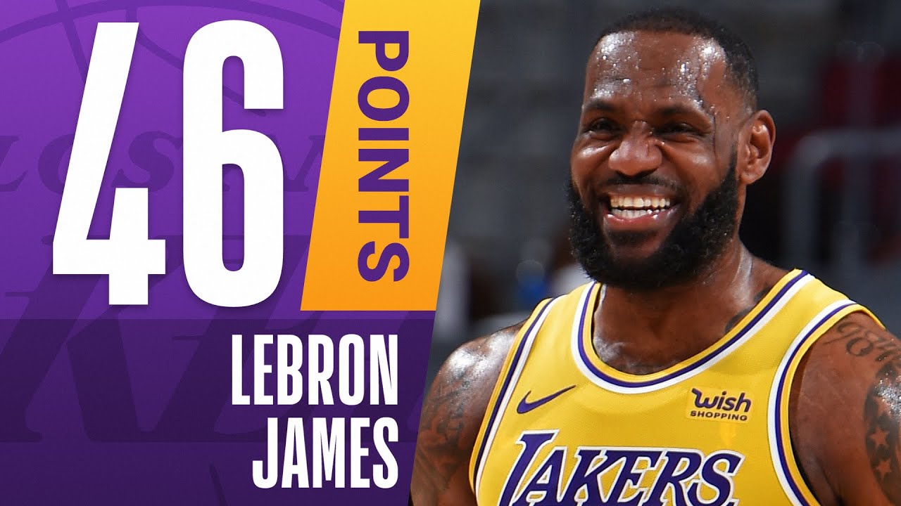 Dans la victoire des Lakers sur les Cavaliers 115 à 108, LeBron James score 46 points à 19/26 aux tirs dont 7/11 à trois points, 1/2 aux lancers francs, 8 rebonds et 6 passes décisives en 38 minutes de temps de jeu. King James inscit notamment 20 points dans le dernier quart-temps pour faire plier Cleveland.