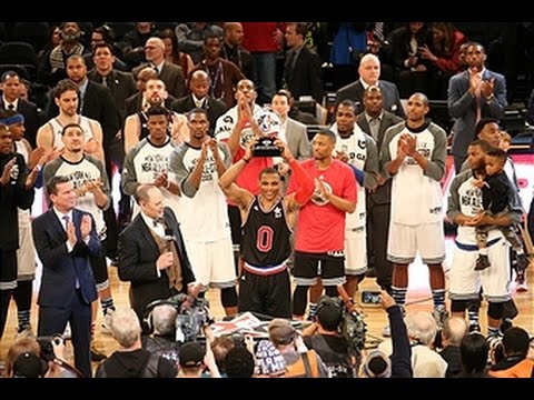 NOP 116Avec 41 points à 16/28 aux tirs, 5 rebonds, 3 interceptions et un record de 27 unités à la mi-temps, Russell Westbrook a survolé le match des étoiles. Il remporte logiquement le titre de MVP de la rencontre. Highlights du joueur du Thunder.