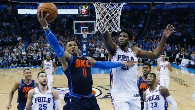 Enfin, on termine cette nuit de NBA avec le splendide duel que nous ont offert Russell Westbrook et Joel Embiid. Le duel a tourné en faveur de Westbrook et d'OKC, comme lors de la première opposition entre les équipes un peu plus tôt dans l'année d'ailleurs et qui s'était terminée après une triple prolongation. Victoire donc 122 à 112 pour Oklahoma City grâce notamment à un très bon Paul George. Finalement sélectionné pour le All-Star Game, PG13 en a profité pour planter 31 points, 4 rebonds, 4 passes dans ce match. Mais ce n'est pas sa prestation qui a été la plus impressionnante, c'est bien entendu celle de Russell Westbrook. Bien que son début de match fut compliqué, le meneur du Thunder s'est remis dans le sens de la marche et c'est grâce à lui, ses drives et ses dunks dont il a le secret qu'OKC est parvenu à l'emporter. Surtout, avec ses 37 points, 14 passes et 9 rebonds, il a totalement remporté son duel qui l'opposait à la nouvelle star de la Ligue : Joel Embiid. Le pivot termine la partie avec 27 points et 10 rebonds et aura montré encore une fois toute l'étendue de sa panoplie. Mieux encore, il s'est permis le luxe d'écrabouiller Russell Westbrook himself lors d'un dunk rageur après un drive de qualité dans la raquette. Malheureusement cela ne suffit pas pour arracher la victoire et c'est bien le Thunder qui enchaîne avec un huitième succès consécutif. OKC reste cinquième de la Conférence Ouest, Philly est huitième à l'Est.