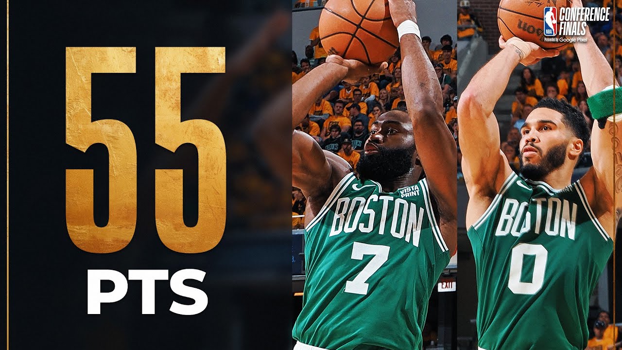 SAC (12-40) 04h00Dans la victoire des Celtics 105 à 102 dans le Game 4 de la finale de Conférence Est, Jayson Tatum et Jaylen Brown totalisent 55 points. Individuellement, Brown inscrit 29 points à 11/22 aux tirs dont 4/8 à trois points, 3/6 aux lancers francs, 6 rebonds et 3 interceptions en 44 minutes de temps de jeu tandis que Tatum ajoute 26 points à 11/26 dont 3/11 derrière l'arc, 1/1 aux LF, 13 rebonds et 8 passes en 44 minutes. À noter que Brown est élu meilleur joueur de la finale de Conférence Est.