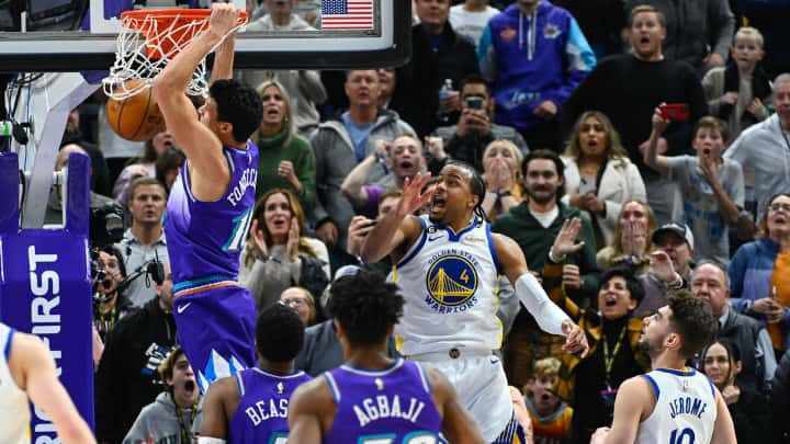 Décidément, la saison des Warriors ne décolle pas. Après deux victoires pour entamer décembre, les hommes de Steve Kerr enchaînent deux revers face aux Pacers et cette nuit, sur le parquet du Jazz, deux franchises pourtant à leur portée. Sans Steph Curry ni Draymond Green, Golden State s’en est remis à Jordan Poole dans le rôle de leader offensif. La ligne de stats est très honorable avec 36 points, 4 rebonds et 8 passes au compteur mais il faut ajouter 6 pertes de balle et une réussite longue distance à 4/13. Au-delà des chiffres, les Warriors ont éprouvé de grandes difficultés à amener de la constance dans une rencontre très équilibrée où chaque équipe à disposer de sa période pour recoller ou faire la différence. Le Jazz a été plutôt sérieux de bout en bout, laissant le jeu venir aux joueurs à la patte chaude, variant les espaces et les opportunités. En découle un Jordan Clarkson à 22 points et 9 passes alors que tous les membres du starting five ont atteint la double-figure aux points, avec une réussite globale à 53,5%. Mention spéciale à Simone Fontecchio, qui saisit sa chance en sortie de banc avec 18 points en 19 minutes et un rôle prépondérant en fin de match. La second unit justement a auguré d’un beau duel à distance entre l’Italien et le sophomore Jonathan Kuminga, 24 points et une très grosse activité dans le dernier QT pour que les Warriors recollent avant le money-time. En effet, le Jazz fait l’effort dans le troisième QT avant que Jordan Poole ne monte en intensité dans les dernières minutes de la rencontre. Sur une énième pénétration, un peu forcée, le 28ème choix de la Draft 2019 redonne l’avantage à son équipe. Jordan Clarkson se fait exclure et on pense alors que l’affaire est pliée mais Malik Beasley à trois points puis Fontecchio sur un dunk à 1.4 seconde du terme, permettent au Jazz de valider leur 15ème succès de la saison. Une victoire d’équipe qui permet aux Mormons de conforter leur 6ème place à l’Ouest. Pour les Warriors en revanche, ça ne décolle pas au-delà de la 10ème place avec une bilan à l’équilibre après 26 matchs. Pas idéal avant de se mesurer au leader NBA incontesté, Boston.