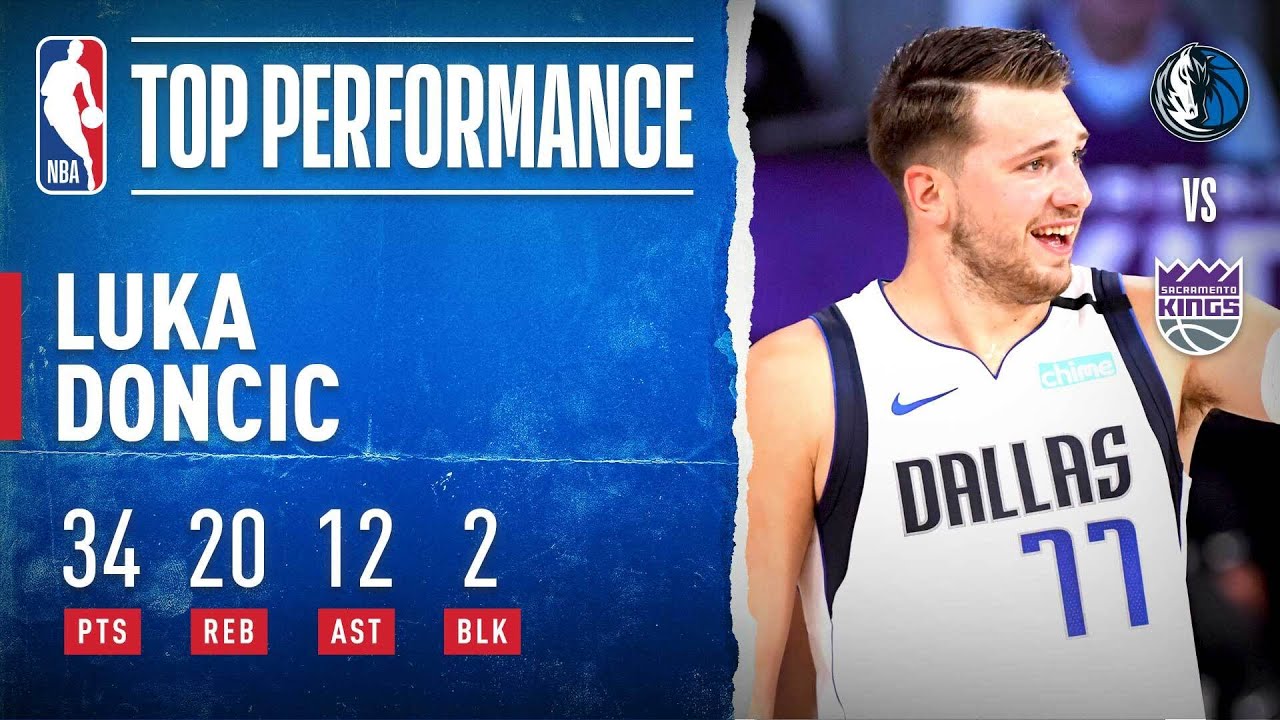 Intenable, partout, Luka Doncic n'a pas fait dans la demie mesure dans le victoire en prolongation de ses Mavericks face aux Kings. Doncic compile pas moins de 34 points à 12/24 aux tirs, 2/6 à trois points, 8/11 aux lancers francs, 20 rebonds (record en carrière) et 12 passes décisives en 44 minutes de temps de jeu. Du grand art pour la star texane !