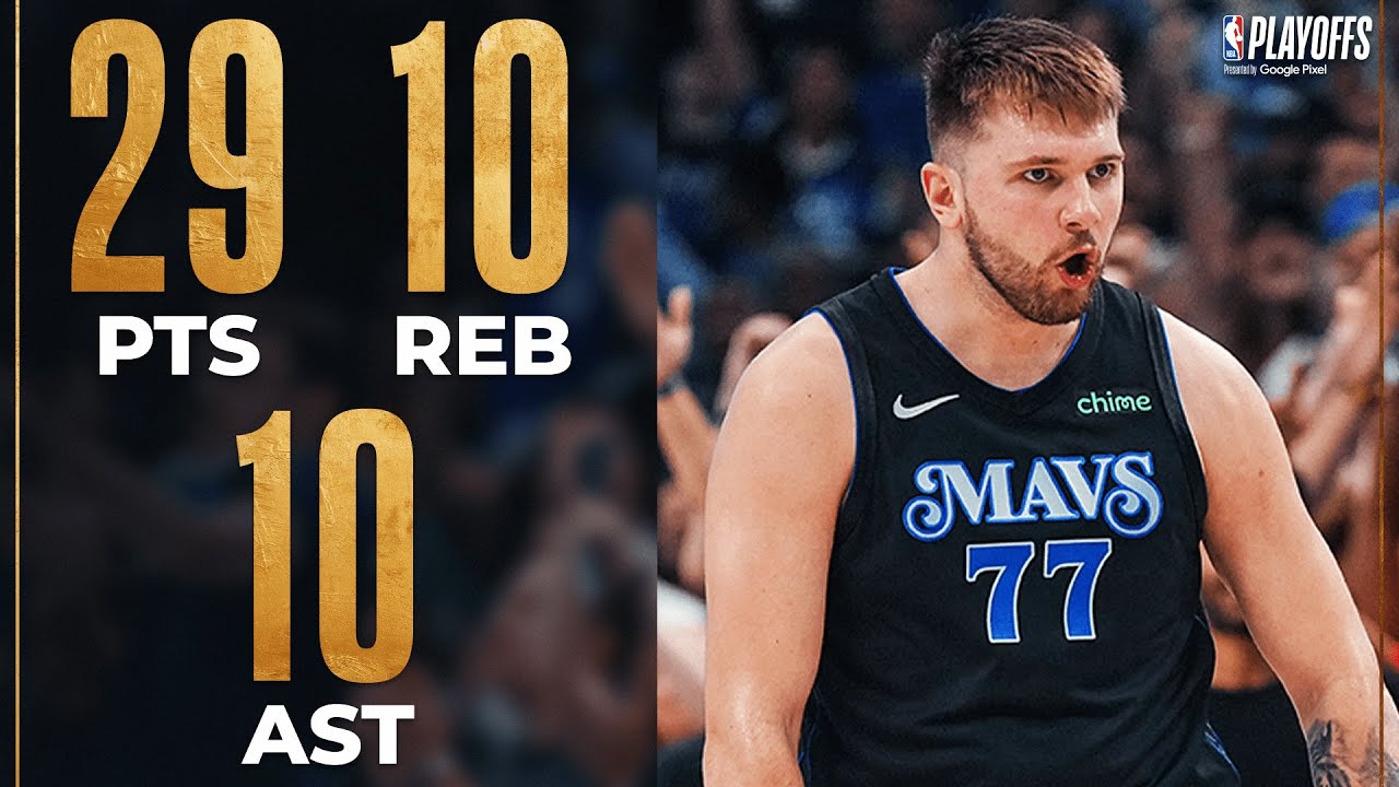 SAC (12-40) 04h00Dans la victoire des Mavericks sur le Thunder 117 à 116, Luka Doncic signe un triple double avec 29 points à 9/15 aux tirs dont 4/6 à trois points, 7/7 aux lancers francs, 10 rebonds, 10 passes décisives pour faire oublier les 7 ballons perdus en 45 minutes de temps de jeu. À noter que la pépite Slovène enregistre son troisième triple double de suite. Il est le cinquième joueur à réaliser cela en playoffs et rejoint le club fermé des 5 :