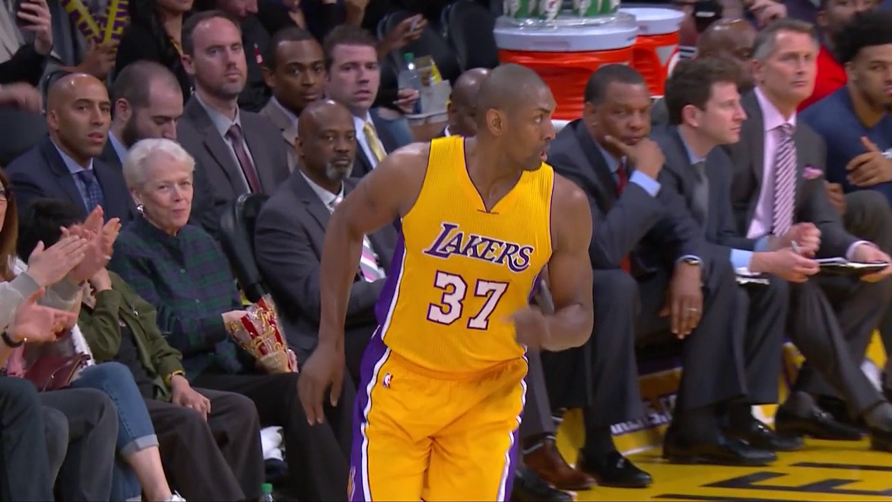 NOP 116Auteur de 18 points en seconde période face à New Orleans, 4/10 à trois points, 4 rebonds et 4 interceptions, Metta World Peace fait parler de lui, enfin, serions-nous tentés de dire. Match sans enjeu pour les deux franchises, il profite du temps de jeu de fin de saison. Highlights MWP face aux Pelicans.