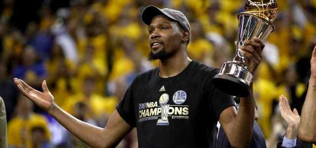 Absent des débats l'an passé à cause notamment de 20 matchs ratés et d'une concurrence folle, Kevin Durant se retrouve deuxième de notre pronostic pour le titre de MVP. Enfin auréolé d'un titre de champion NBA et de MVP des Finales, nous voyons Kevin Durant être totalement libéré dans son jeu et prendre encore une autre dimension dans l'effectif des Warriors. Aux côtés de Stephen Curry, KD réalisera une saison fantastique durant laquelle, s'il ne se blesse pas, il sera dans tous les cas dans la conversation. Auteur de 25 points de moyenne sur cette saison, nous voyons bien Durantula augmenter cette moyenne en faisant notamment quelques gros cartons au scoring. Clairement, il aura tous les arguments pour peser dans la course et devenir pour la seconde fois MVP de la saison régulière mais le côté valuable en lui même et la présence de Stephen Curry à ses côtés l'empêcheront de terminer premier aux votes.