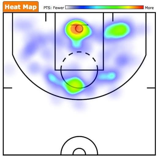 Depuis son entrée dans le 5 majeur le 28 janvier 2016 à la place d'un Ian Mahinmi blessé, le rookie ne l'a plus quitté et s'est imposé pour jouer en moyenne 30,1 minutes par match. Un temps de jeu conséquent qui lui permet d'apporter satisfaction à son président et à son coach. Pivot rapide et très à l'aise face au panier, Myles est la clé de voûte du spacing des Pacers - cette volonté d'écarter le jeu et les défenses adverses - grâce à un jeu à mi-distance dévastateur. Sur ses 367 shoots pris jusqu'à présent, 205 ont été tentés à mi-distance, soit 56% de ses shoots. Le schéma ci-dessous témoigne de la sélection de ses tirs et de ses spots préférentiels.
