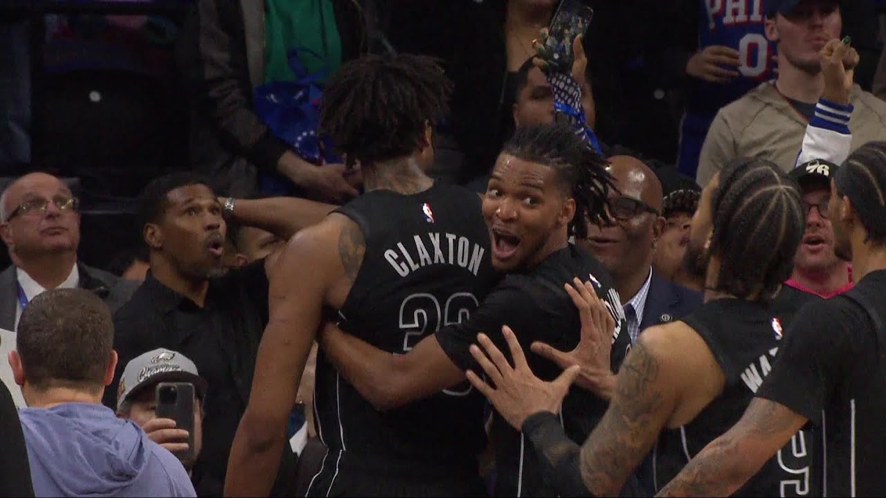 NOP02h00103 partout entre les Nets et les Sixers, Cameron Johnson (23 points) manque son tir à trois points mais Nic Claxton (16 points et 9 rebonds) suit bien pour pousser le cuir dans le cercle. Brooklyn l'emporte au buzzer 105 à 103 face à Philadelphia.