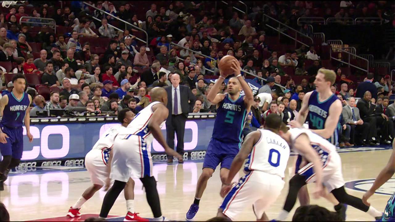 POR (9-16) 03h00Avec 19 points à 8/16 aux tirs, 12 rebonds et 12 passes décisives, Nicolas Batum complète son second triple double cette saison avec les Hornets. Charlotte réalise une bien belle saison et ce ne sont pas les faibles Sixers qui ont pu contenir la fougue de l'ailier français. Highlights de notre MVP de la nuit, Nicolas Batum !