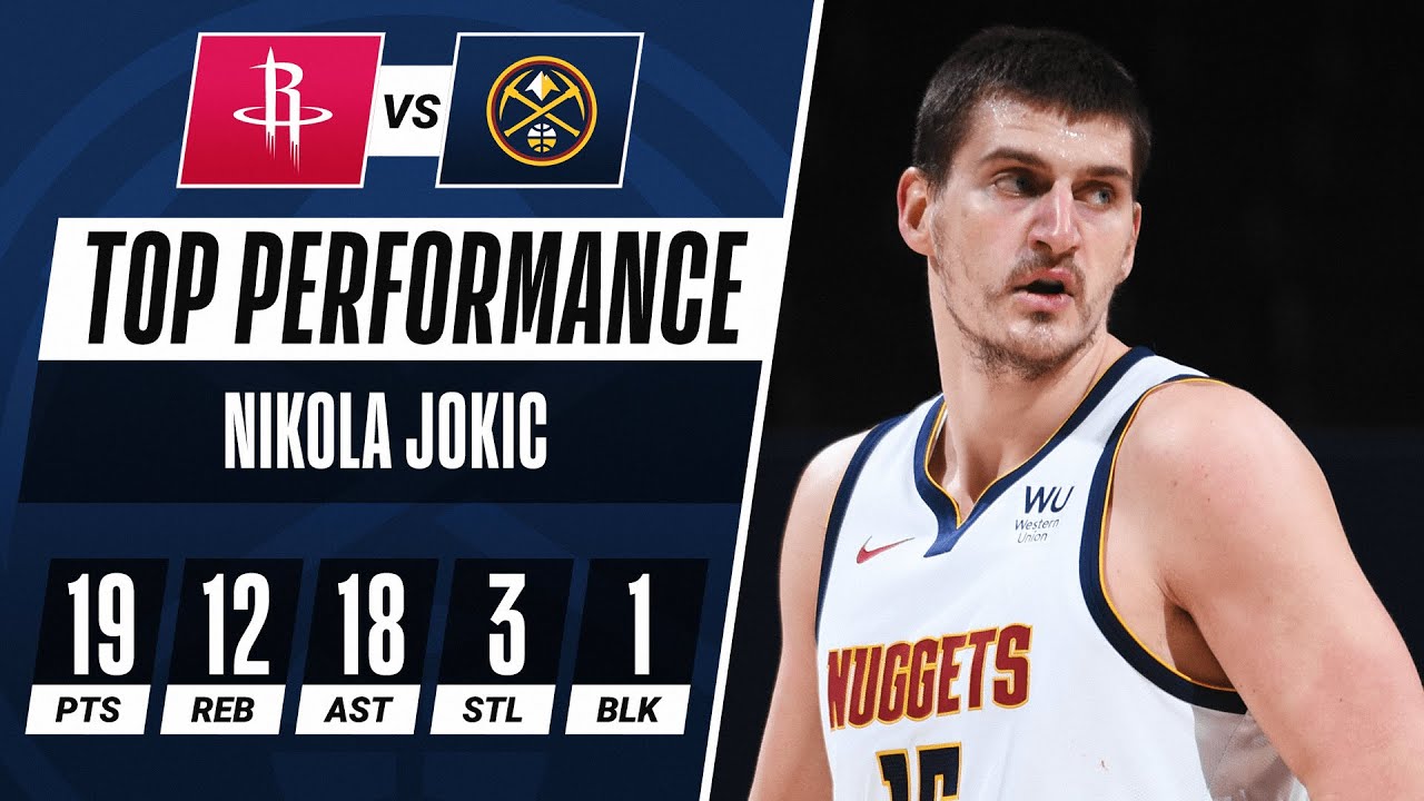 Dans la victoire des Nuggets sur les Rockets 124 à 111, Nikola Jokic compile 19 points à 8/11 dont 1/1 à trois points, 2/3 aux lancers francs, 12 rebonds et la bagatelle de 18 passes décisives (record en carrière) en 34 minutes de temps de jeu. Avouez que pour un intérieur, 18 passes, c'est juste incroyable !
