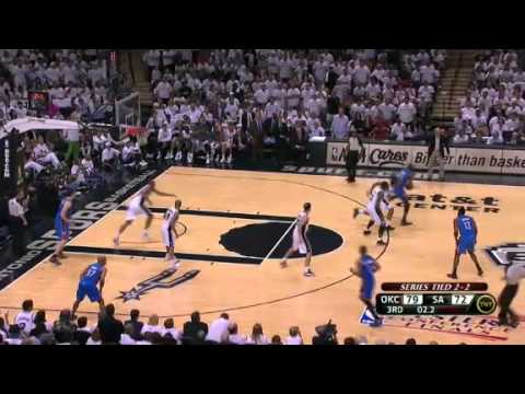 Encore une fois, San Antonio court après le score. Surtout, l'équipe n'arrive pas à empêcher le Thunder de répondre instantanément à ses paniers réussis. Comme si ça ne suffisait pas, et alors que Duncan commence à se réveiller, c'est James Harden qui fait son boulot de sixième homme, un coup d'accélérateur qui doit plier le match en gagnant du temps.Oui mais les visiteurs vont se faire très peur : menant de 13 points à cinq minutes du buzzer final, ils encaissent un 11-0 en quatre minutes, de quoi redonner un espoir inattendu aux spectacteurs du AT&T Center. La faute à une vilaine tendance au 1-on-1 en attaque de la part de Westbrook et Harden, qui provoquent des situations de shoot compliquées voire des pertes de balle.