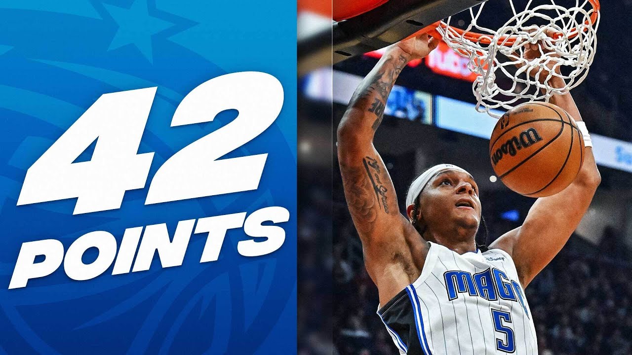 MIN 96 (32-22) Malgré 42 points (record en carrière) de Paolo Banchero au Rocket Mortgage FieldHouse de Cleveland, le tout à 16/26 aux tirs dont 1/5 à trois points, 9/12 aux lancers francs, 6 rebonds et 2 contres en 38 minutes de temps de jeu, le Magic ne parvient pas à remporter la victoire face aux Cavaliers, 121 à 111. Côté Cavs, Donovan Mitchell sort 35 points, 7 rebonds et 6 passes, 26 points et 9 passes de Darius Garland.