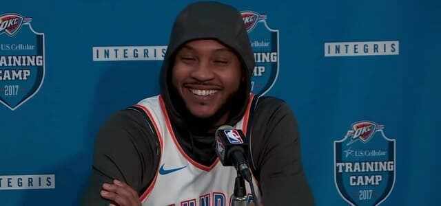 Parfois utilisé au poste 4 chez les Knicks, Anthony a quand même passé le plus clair de son temps à l'aile. Mais, à 33 ans, il a désormais la carrure pour tenir le choc dans la raquette et son décalage en stretch four permettra au Thunder d'évoluer dans une formation small ball. Pas réputé pour sa défense, Melo pourra compter sur la présence de Steven Adams pour boucher les trous dans la peinture. Avec les pénétrations de Russell Westbrook et Paul George, Melo va bénéficier de shoots ouverts une fois le ballon ressorti, un exercice où il excelle : l'an dernier, l'ancien Knick shootait à 42,6% à 3 points en catch and shoot et plus de 45% dans le périmètre. Pour lui, peu importe sa place sur le parquet, du moment que le jeu d'attaque est fluide :