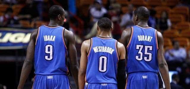C'est pourquoi, je pense réellement qu'OKC va chuter. En outre, Kanter n'a joué que 10 rencontres avec Ibaka et aucune avec Durant. C'est vrai, il est complémentaire de Westbrook lorsque ce dernier daigne lui donner la balle. Il a réalisé 11 rencontres à 20 points et 10 rebonds avec le Thunder (DeAndre Jordan 7, Dwight Howard 11, Al Horford 7 et Blake Griffin 9) et représente une véritable menace dos au pannier, chose que ne fait pas Ibaka. Mais Enes est du gruyère en défense ! Royce White d' ESPN et qui croit en OKC nous dit qu'il était classé plus mauvais pivot statistiquement en défense dans la catégorie du rapport des points encaissés par possession. Pire, en saison régulière, OKC a encaissé 8345 points en 2014 - 2015, soit 439 points de plus que l'année où l'équipe est allée en Finales. Avec cette donne là, impossible de voir l'avenir en rose. Et il y en a un qui souhaite penser victoire plutôt que gros sous. Ses initiales ? KD !