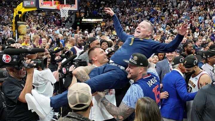 POR 136 (10-16) En remportant le Game 5 à domicile 94-89, les Nuggets ont mis un terme à 47 ans d'attente. Le trophée Larry O'Brien vient récompenser une campagne de playoffs historique pour la franchise du Colorado. Jamais Denver n'avait atteint les Finales NBA, jamais Denver n'avait sweepé un adversaire en playoffs, jamais un joueur n'avait été leader aux points, rebonds et passes sur un run de postseason. C'est pourtant ce que viennent d'accomplir, Nikola Jokic et ses coéquipiers. Dans une Ball Arena en fusion au milieu des confettis et des bouteilles de champagne, le coach Michael Malone savoure son succès. Il vient de faire taire les observateurs sceptiques sur les chances des Nuggets, une fois les playoffs arrivés. En poste dans les Rocheuses depuis 2015, Malone est passé par toutes les étapes de la construction d'un champion. Le palier suivant, établir une dynastie ! Rien que cela !