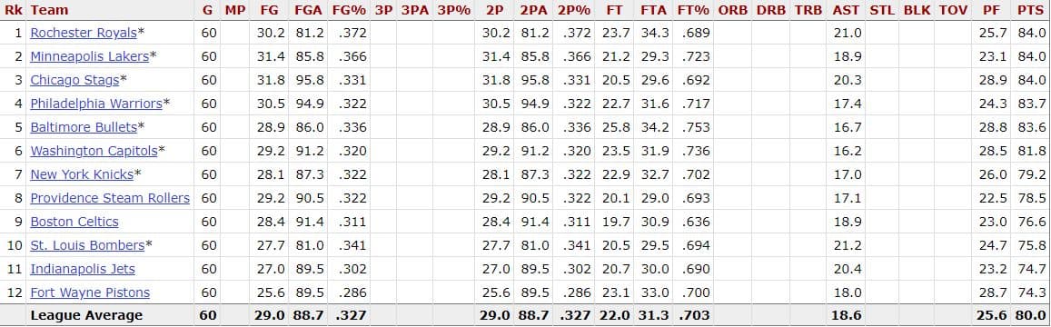 Mais pourquoi la zone avait-elle était mis en place ? En 1947, l’horloge des 24 secondes n’existait pas encore et cela menait à des possessions parfois interminables comme nous avons pu en parler dans le premier épisode de cette série. De plus, les pourcentages au tir étaient très faibles. Pour donner une idée, lors de la saison 1946-1947, aucune équipe ne tirait à plus de 30%. Ces pourcentages étaient dus au fait que la ligne à trois points n’existait pas encore et que donc bon nombre de tirs étaient pris près du panier. Hors contre une défense en zone, il n’est pas évident de marquer de près. Ces deux facteurs amenaient à des défenses qui prenaient trop souvent le pas sur les attaques. Pour inverser la tendance, la NBA a interdit la défense en zone le 11 janvier 1947. Et ceci a eu un impact immédiat puisque dès la saison suivante, seuls les Fort Wayne Pistons ont shooté en-dessous de 30% et la moyenne de points par match est passée de 67,8 à 80.