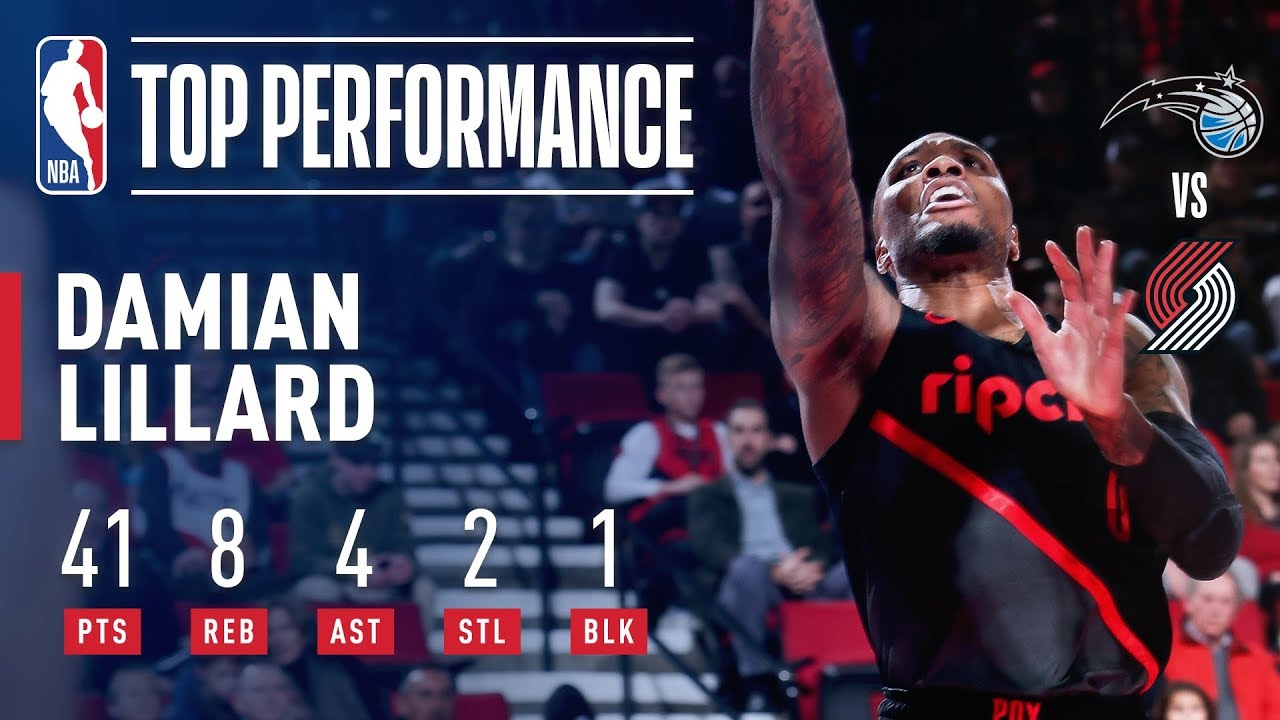UTA 8-14 02h00Avec 41 points à 13/22 aux tirs mais surtout 10/15 à trois points (!) dont 7 dans le troisième quart-temps, 5/7 aux lancers francs, 8 rebonds, 4 passes décisives et 2 interceptions, Damian Lillard est in the zone derrière l'arc !