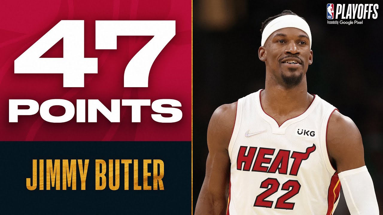 Un record de points personnel en playoffs. Voilà la copie de ce que Jimmy Butler a rendu. L'arrière All Star inscrit 47 points à 16/29 aux tirs dont 4/8 à trois points, 11/11 aux lancers francs, 9 rebonds, 8 passes décisives et 4 interceptions en 46 minutes de temps de jeu. De plus, Butler inscrit un Buzzer Beater à une quarantaine de secondes de la fin du match pour sceller la rencontre. Pour les Celtics, Jayson Tatum termine à 30 points, 9 rebonds et 4 passes.