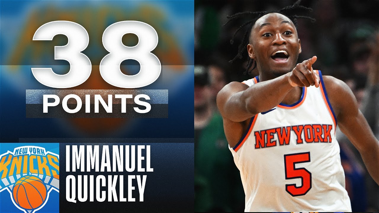 Visionnez les highlights de Quickley suivis de la fin du match Knicks vs Celtics.