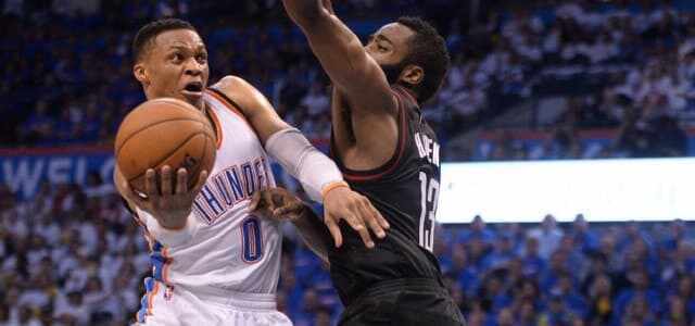 Au four et au moulin, Westbrook compile son second triple double de suite (7ème de sa carrière en playoffs) avec 32 points à 11/24 aux tirs, 10/14 aux lancers francs, 13 rebonds, 11 passes décisives et 3 interceptions. James Harden rétorque avec 44 points à 11/21 dont un parfait 18/18 aux lancers francs, 6 passes, 6 rebonds et 7 ballons perdus. Mais Harden manque le tir à trois points décisif qui aurait pu mettre à l’abris Houston en fin de rencontre.