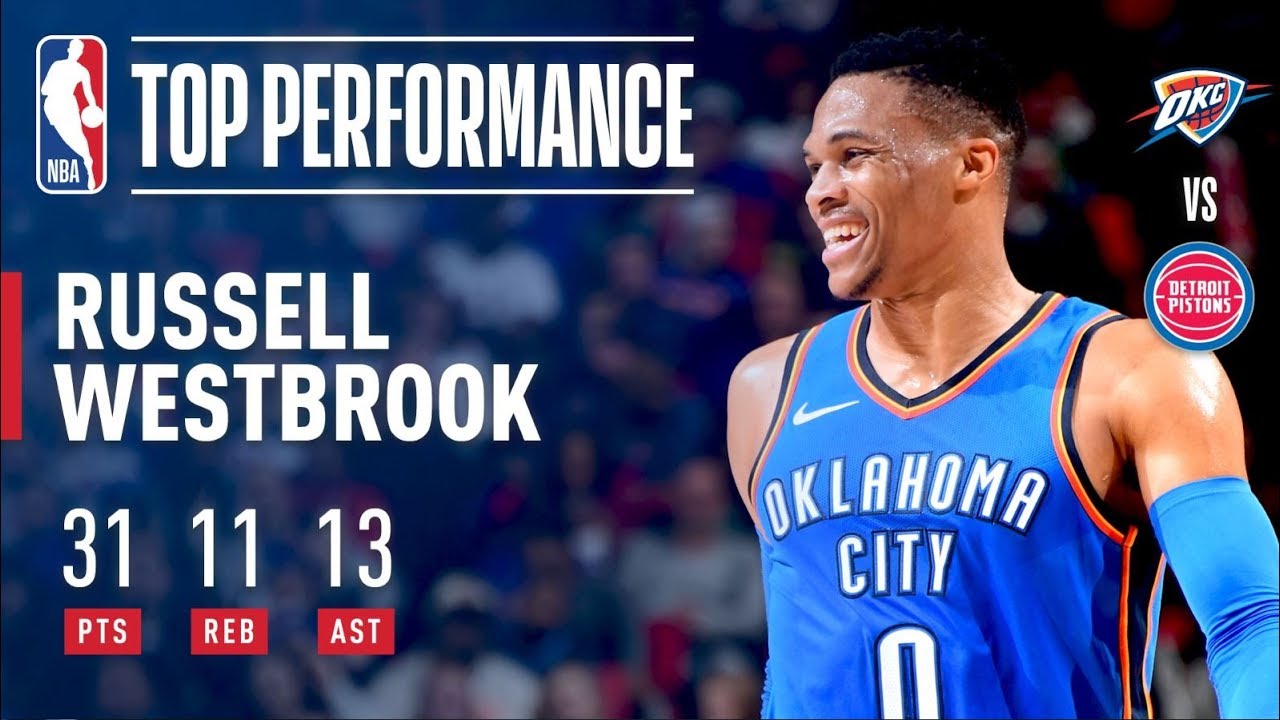 NOP 116Si Carmelo Anthony (21 points) a franchi la barre des 25000 points en carrière, c'est bien Russell Westbrook qui rythme le match du Thunder en déplacement à Motor City, Detroit. Westbrook inscrit 31 points à 13/22 aux tirs dont 3/4 à trois points, 2/4 aux lancers francs, 13 passes décisives, 11 rebonds et 6 ballons perdus. Un 15ème triple double cette saison. Le moteur des Pistons cale sous les coups d'accélération du All Star d'Oklahoma City.