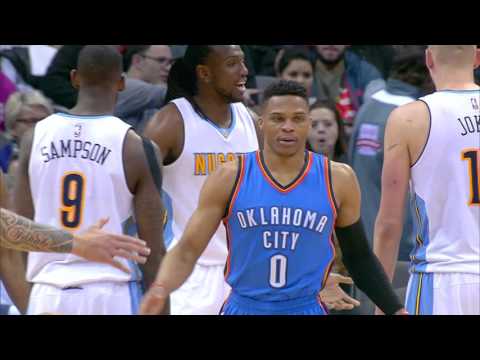 LAC 103 (6-20) Dans la victoire du Thunder sur les Nuggets sur le score de 124 à 102, Russell Westbrook noircit la feuille de stats avec un 17ème triple double (record NBA égalé), 13 points à 4/9 aux tirs, 14 rebonds et 12 passes décisives. Il rejoint la légende Magic Johnson avec 17 triple double et aura même l'occasion de battre ce record sur les 4 derniers matchs de la saison d'Oklahoma City. Highlights de notre MVP de la nuit, Russell Westbrook !