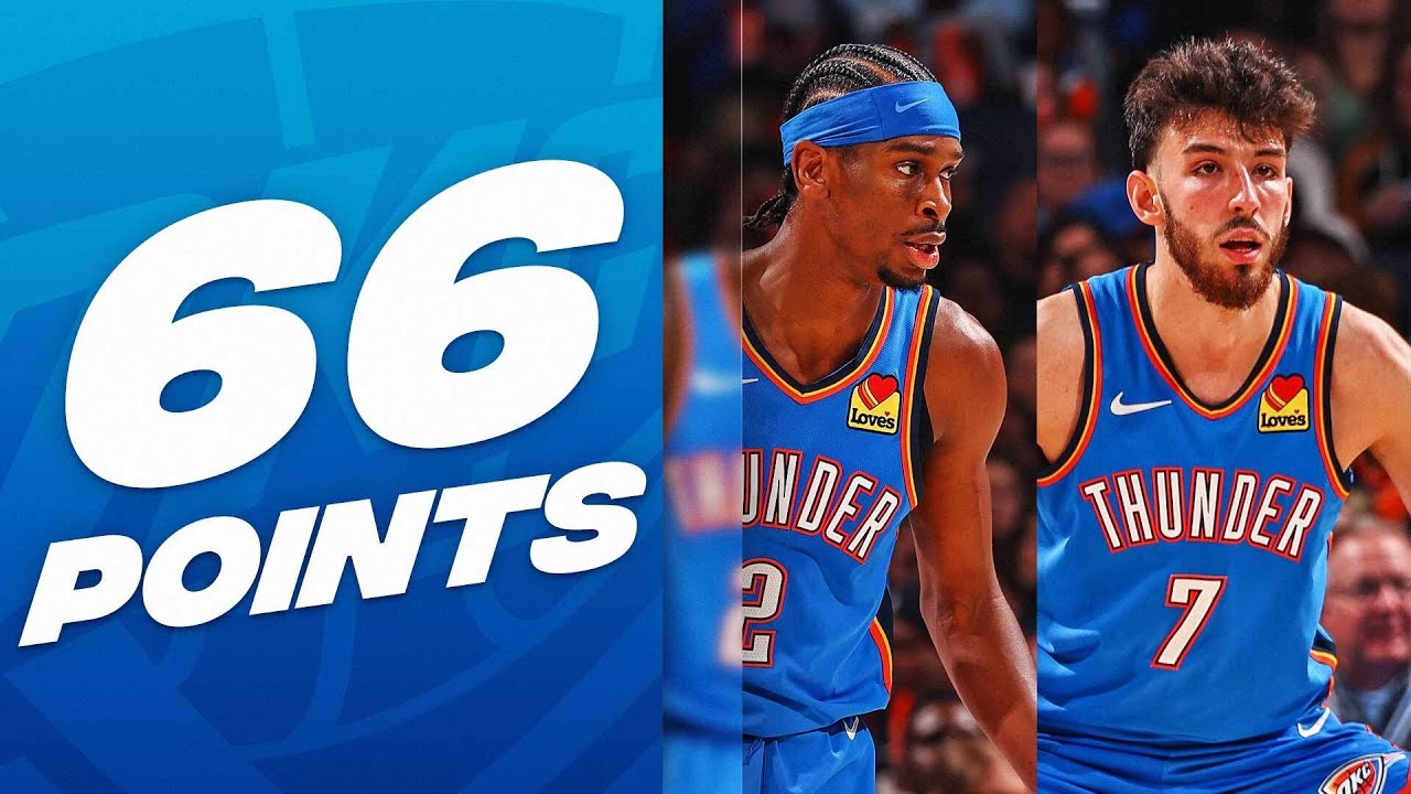 POR (9-16) 03h0066 des 119 points du Thunder ont été inscrits par Shai Gilgeous-Alexander et Chet Holmgren. Individuellement, SAG marque 31 points à 12/22 aux tirs dont 2/4 à trois points, 5/6 aux lancers francs, 7 passes décisives et 4 interceptions en 33 minutes de temps de jeu. Le rookie concurrent principal de Victor Wembanyama, Chet Holmgren, réalise une belle performance avec 35 points à 12/18 dont 1/5 derrière l'arc, 10/12 aux LF, 14 rebonds et 3 contres en 31 minutes.
