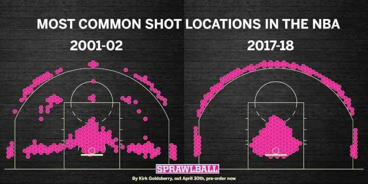 C'est en partie grâce à Second Spectrum, et SportVU, que les analystes NBA se sont rendus compte que le tir à mi-distance n'était pas assez rentable et qu'il fallait donc tenter de l'éliminer tant que possible, pour ne prendre que des shoots à hauts pourcentages (dans la raquette) ou bien à plus fortes valeurs (3 points).