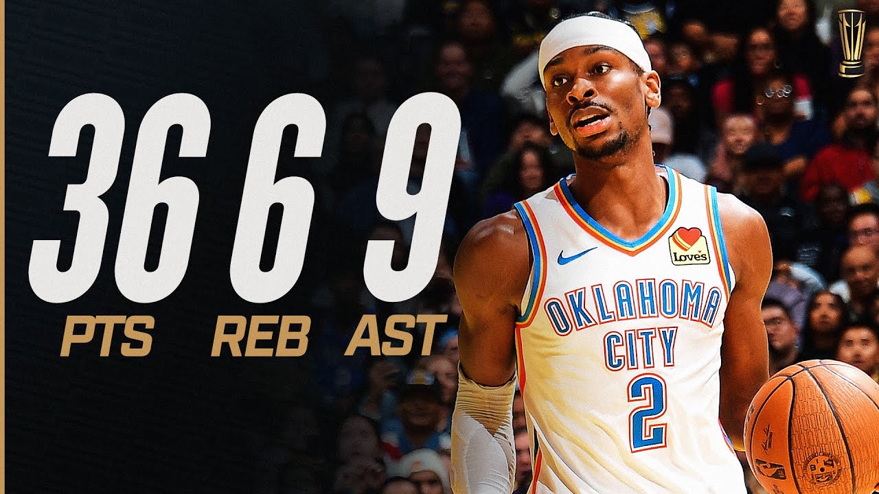 LAL (30-19) 04h00Auteur de 36 points (dont 15 dans le quatrième quart-temps) à 13/28 aux tirs dont 3/10 à trois points, 7/8 aux lancers francs, 9 passes décisives et 6 rebonds, Shai Gilgeous-Alexander brille à Los Angeles et le Thunder l'emporte 101 à 93 face aux Lakers.