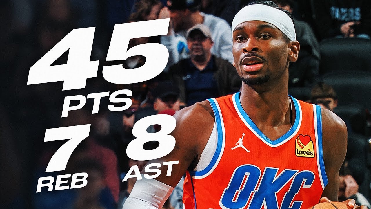 LAC 91 (23-27) Dans la victoire du Thunder face aux Pacers 120 à 114, Shai Gilgeous-Alexander score la bagatelle de 45 points à 15/22 aux tirs dont 4/5 à trois points, un parfait 11/11 aux lancers francs, 8 passes décisives et 7 rebonds. Une adresse folle pour le Canadien qui n'a quasiment rien manqué. Jalen Williams ajoute 20 points.