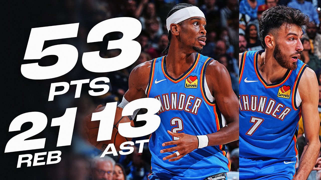 SAC (12-40) 04h00Dans la victoire du Thunder sur les Nuggets 102 à 87, Shai Gilgeous-Alexander et Chet Holmgren totalisent 53 points, 21 rebonds et 13 passes décisives. Individuellement, SAG est à 28 points, 8 passes et 7 rebonds tandis que Holmgren score 25 points, 14 rebonds, 5 passes et 4 contres. C'est d'ailleurs notre MVP de la nuit sur Inside Basket.