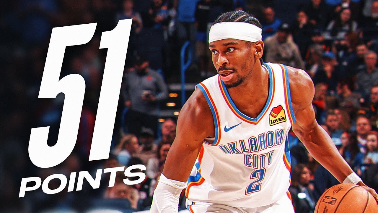 POR 125 (23-28) Dans la victoire du Thunder sur les Rockets 137 à 128, Shai Gilgeous-Alexander inscrit 51 points à 18/30 aux tirs dont 5/9 à trois points, un parfait 10/10 aux lancers francs, 7 passes décisives et 5 rebonds en 36 minutes de temps de jeu. Jalen Williams ajoute 24 points, 11 points et 11 rebonds de Chet Holmgren.