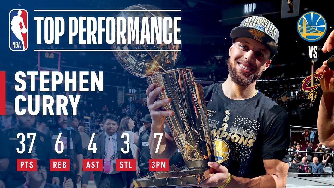 NOP02h00Un total de 57 points pour le duo de choc des Warriors, Stephen Curry et Kevin Durant. Curry inscrit 37 points à 12/27 aux tirs dont 7/15 à trois points, 6/6 aux lancers francs, 6 rebonds, 4 passes décisives, 3 interceptions et 3 contres en 37 minutes de temps de jeu. Mais le meneur de Golden State se fait chiper (injustement ?) le titre de MVP des finales par Kevin Durant qui termine en triple double, 20 points à 7/17, 6/6 aux lancers francs, 12 rebonds, 10 passes et 3 contres en 38 minutes de temps de jeu.