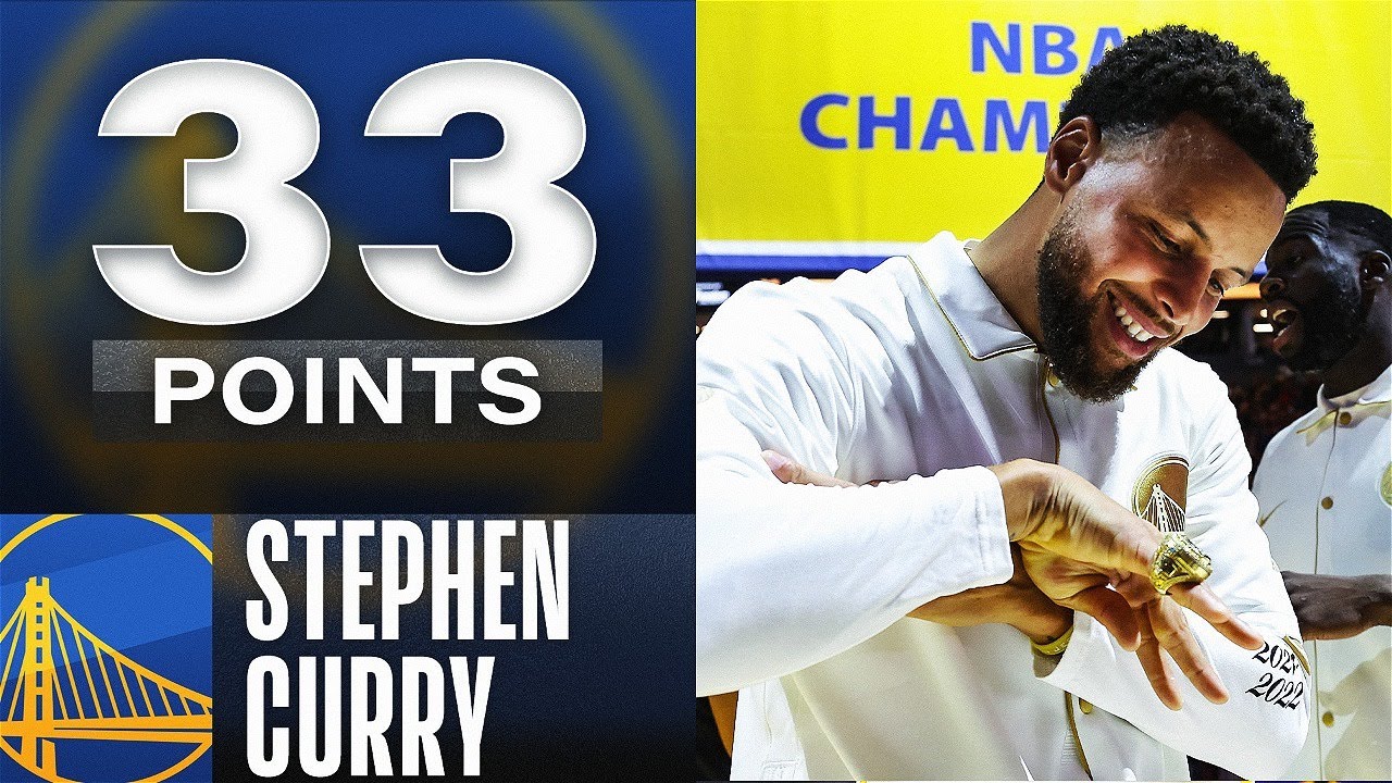 Une bonne soirée pour Stephen Curry qui a reçu sa bague de Champion et qui a permis aux Warriors de l'emporter face aux Lakers. Curry inscrit 33 points à 10/22 aux tirs dont 4/13 à trois points, un parfait 9/9 aux lancers francs, 7 passes décisives, 6 rebonds et 4 interceptions en 33 minutes de temps de jeu.