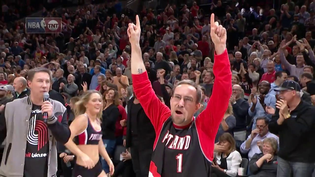 En numéro 1, un fan des Trail Blazers rentre le tir du milieu du terrain pour empocher un joli pactole !