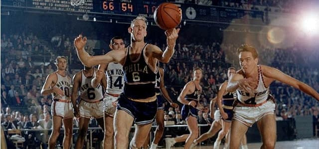 C'est pour les Warriors... de Philadelphie à l'époque qu'il a inscrit ses 100pts en un match mais ce n'est pas uniquement pour ça qu'il mérite la première place. Avec 41.5pts par match avec les Warriors en plus de 25.1rbds, Wilt et ses stats d'un autre temps ne pouvaient qu'obtenir la première place de ce top.