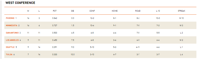 - Sandrine Gruda (Los Angeles) : 0 points et 2 rebonds ; 4 points et 8 rebonds ; 12 points et 4 rebonds.