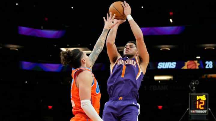 La soirée avait très mal commencé pour les fans des Suns. Alors que les deux équipes s'échauffaient, Kevin Durant glisse et se blesse. L'ailier est donc absent, alors qu'il devait faire ses débuts à domicile. Heureusement, les joueurs de Monty Williams ont réussi à garder la tête froide. Derrière les 44 points à 17/23 de Devin Booker et les 24 points en sortie de banc de Terrence Ross, ils ont mené pendant l'intégralité de la rencontre, ou presque, contre le Thunder. Surement fatigués de leur match d'hier contre les Warriors, et surtout sans Shai Gilgeous-Alexander, personne n'a vraiment su tirer son épingle du jeu chez le Thunder, à part Lindy Waters III, qui cale un 6/12 à trois points pour finir avec 23 pions. À noter le match potable de Ousmane Dieng, qui signe 12 points et 7 rebonds. Insuffisant pour s'imposer toutefois, et l'écart final reflète au final plutôt bien cette rencontre. Attention par contre pour les Suns, Durant pourrait être absent de nombreuses semaines.