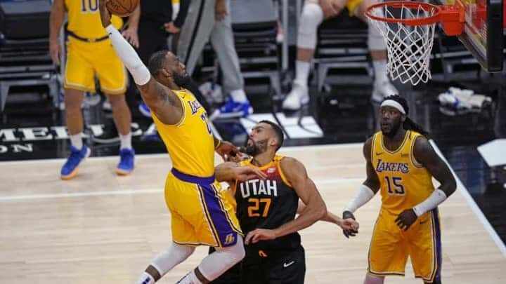 La série noire continue pour Los Angeles. Depuis la blessure d'Anthony Davis et avec l'absence de Dennis Schroder, les champions en titre semblent complètement perdus et cela s'est vu une nouvelle fois cette nuit contre Utah. Sur le parquet du Jazz, l'illusion n'aura duré que douze minutes. Dans un premier quart-temps relativement faible en scoring (24 à 23 pour Utah), LeBron James et les siens font jeu égal avec les joueurs de Quin Snyder. Mais dès que le deuxième quart démarre, Utah enclenche la machine et inflige une sale correction à L.A sur la période. Avec 39 points encaissés, les Lakers ne savent plus où donner de la tête. A la pause, il y a déjà presque 20 points... (63 - 47). Le retour des vestiaires ne va rien arranger pour les Californiens. Avec seulement 17 unités inscrites dans le troisième quart, les joueurs de Frank Vogel ne parviennent pas à réduire l'écart. Si il y avait presque 20 points à la mi-temps, l'addition à la fin de la troisième période est encore plus salée : 90 - 63.