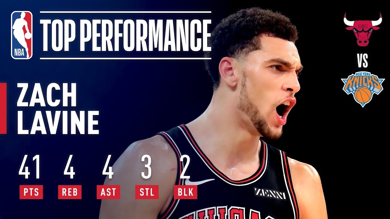 NYK (35-21) 02h30Zach LaVine est en grande forme en ce début de saison comme en attestent ses statistiques de la soirée face aux Knicks. Auteur de 41 points à 13/25 aux tirs, 4/10 à trois points, 11/14 aux lancers francs, 4 rebonds, 4 passes décisives, 3 interceptions, 8 ballons perdus en 49 minutes de temps de jeu, LaVine joue sur tous les fronts.