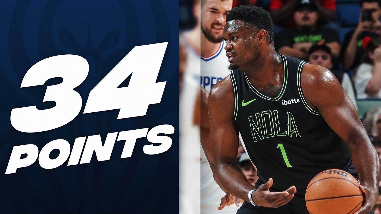 SAC (12-41) 04h00Dans la victoire des Pelicans sur les Clippers 112 à 104, Zion Williamson signe 34 points à 14/21 aux tirs, 6/10 aux lancers francs, 7 rebonds, 4 passes décisives et 3 interceptions en 35 minutes de temps de jeu.